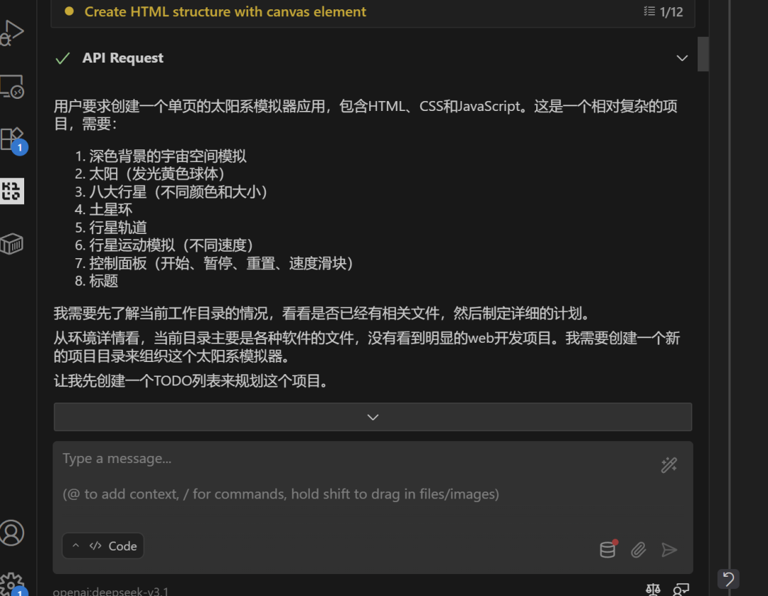 3)完成配置,就让 Qwen3-Max-Preview 为我们生成一份前端网页动态效果代码吧: