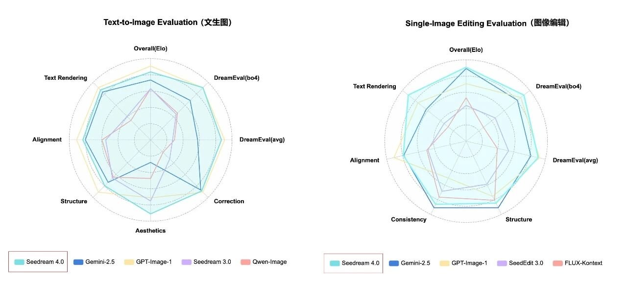 此外,在MagicBench人工评测基准上,Seedream 4.0在文生图与图像编辑评测中均达到业界头部水平;且在综合Elo打分中,超越Gemini 2.5 Flash Image位居第一。