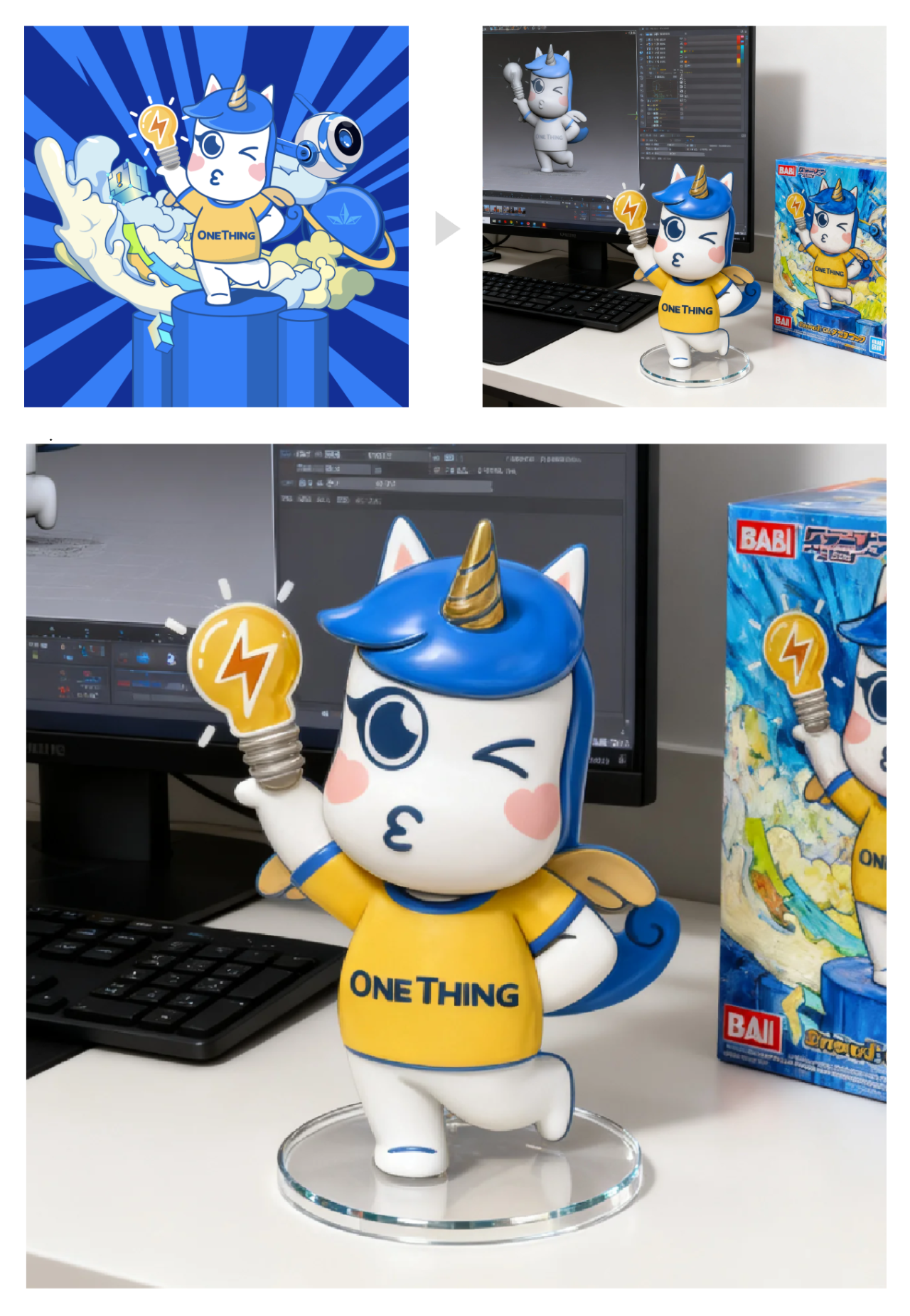综合看来,细节没糊、摄像头位置也完美避让了。这对电商、产品设计这类需求来说,实用+1。不仅如此,就连之前nano- banana刷屏的3D手办玩法,Seedream 4.0同样轻松拿捏: