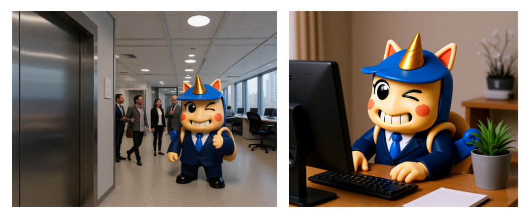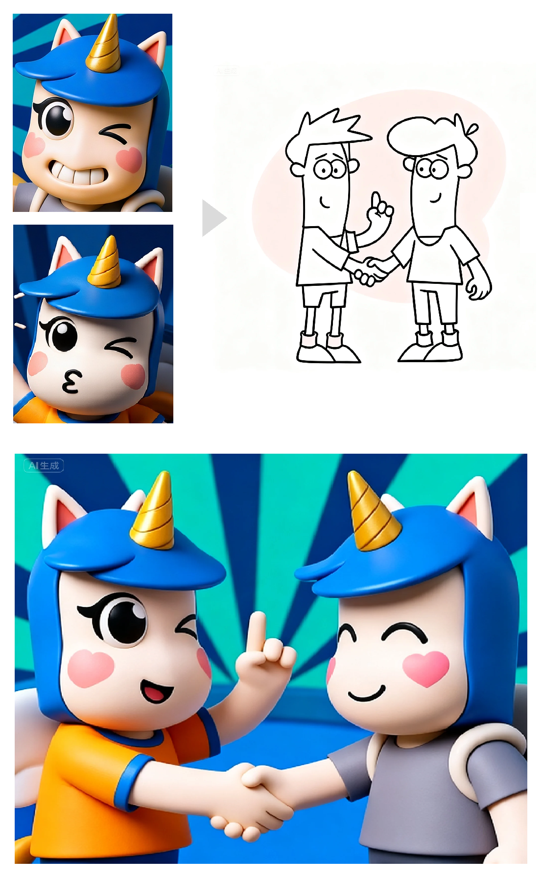 我们参考官方提出的八类基础玩法,设计了一组 Prompt,分别围绕主体一致性、多图融合、连续生图等操作来观察模型的整体表现: