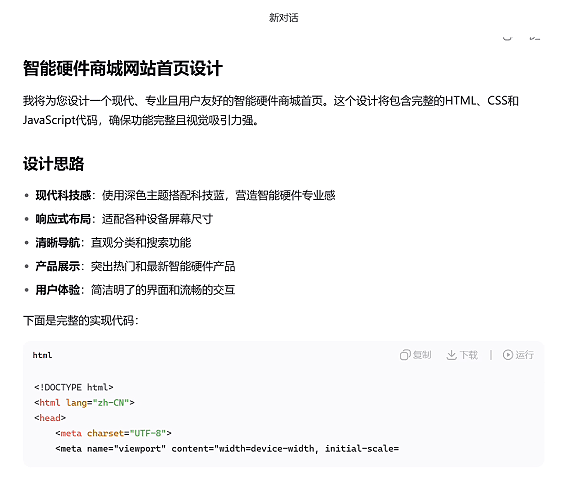 现在,我们借助工具接入最新升级的 DeepSeek-V3.1-Terminus,让它帮我生成一个关于智能硬件售卖网站的前端代码,测试下该问题是否得到解决: