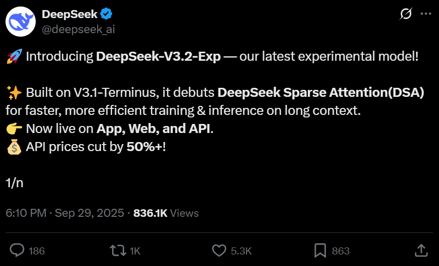 昨晚,DeepSeek-V3.2-Exp模型正式发布并开源,网心算力云已首发接入!
