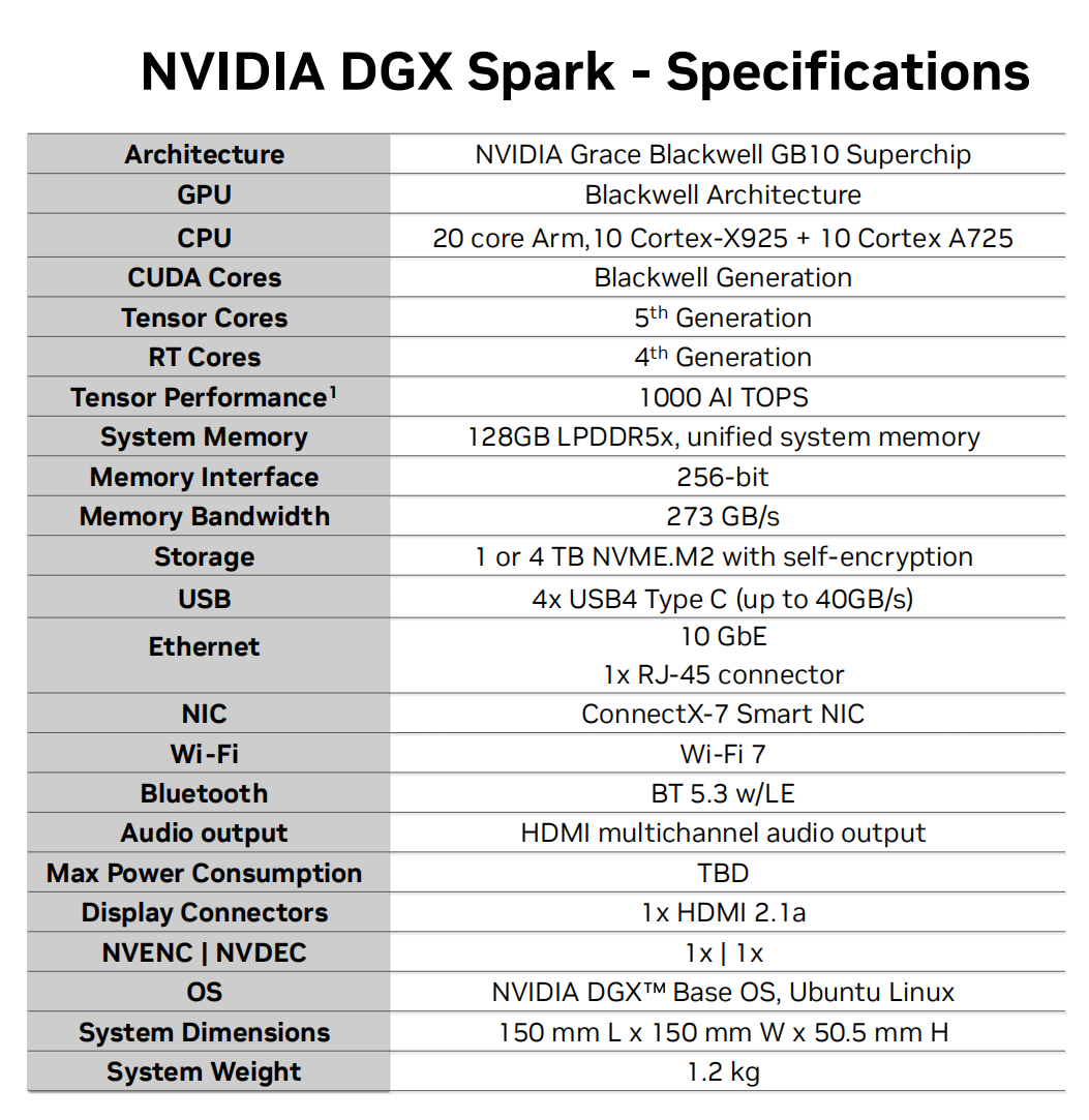 DGX Spark的强悍性能,从核心硬件配置就可见一斑: