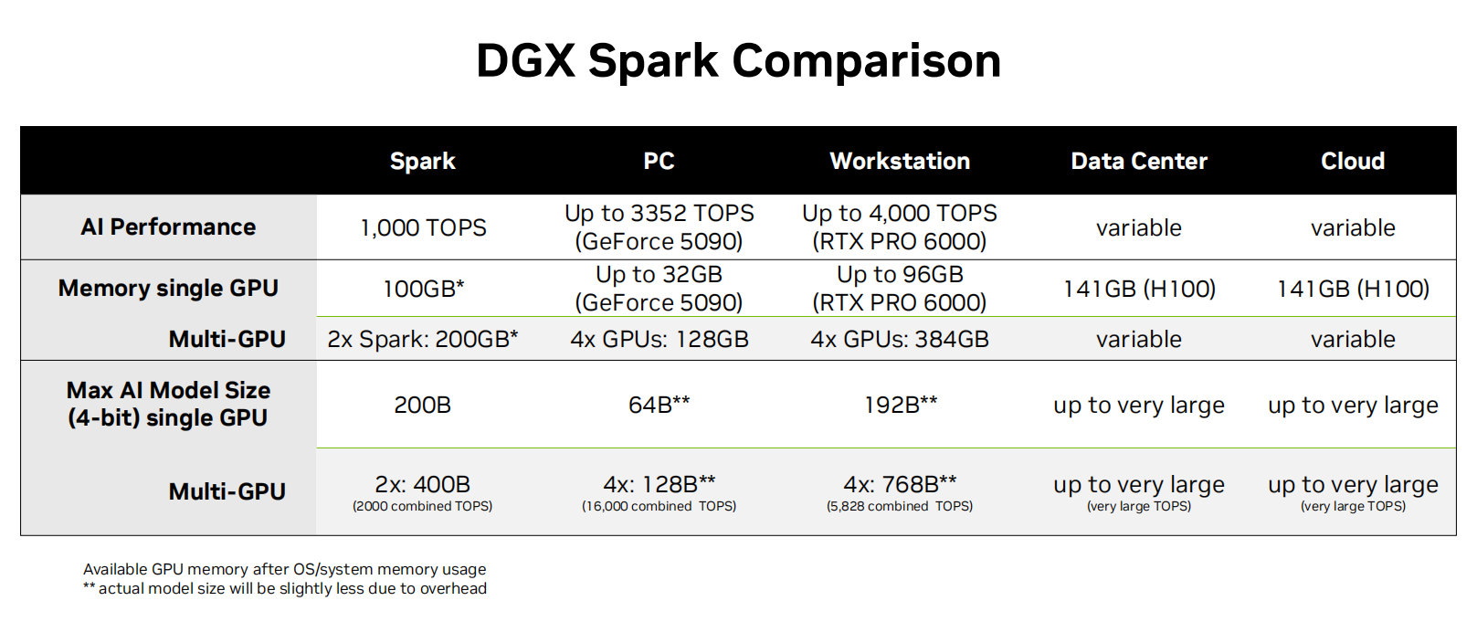 综合来看,NVIDIA DGX Spark 在 AI 性能表现、内存配置及大模型支持能力上,显著优于普通PC和工作站,且在核心指标上具备与数据中心、云平台竞争的端侧超级计算实力。