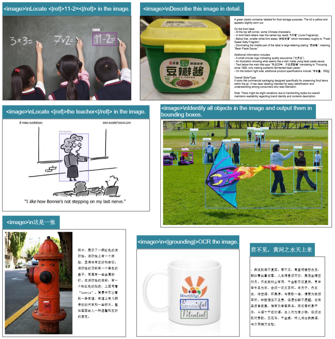 此外,模型仍保留了通用视觉理解方面的能力,如图像描述、目标检测、定位等。
