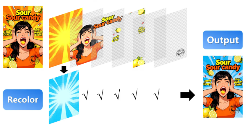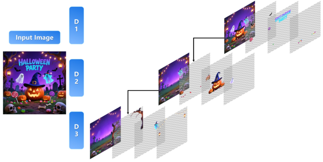 任意一个图层本身都可以被进一步分解,从而实现无限层级的细化分解,以获得更细致的控制。