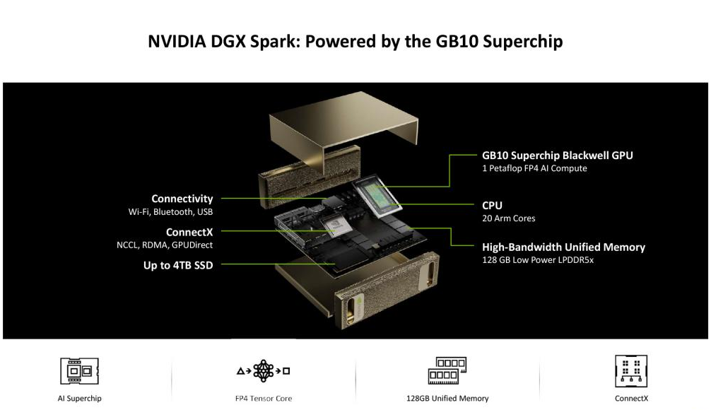 DGX Spark的强悍性能,从核心硬件配置就可见一斑: