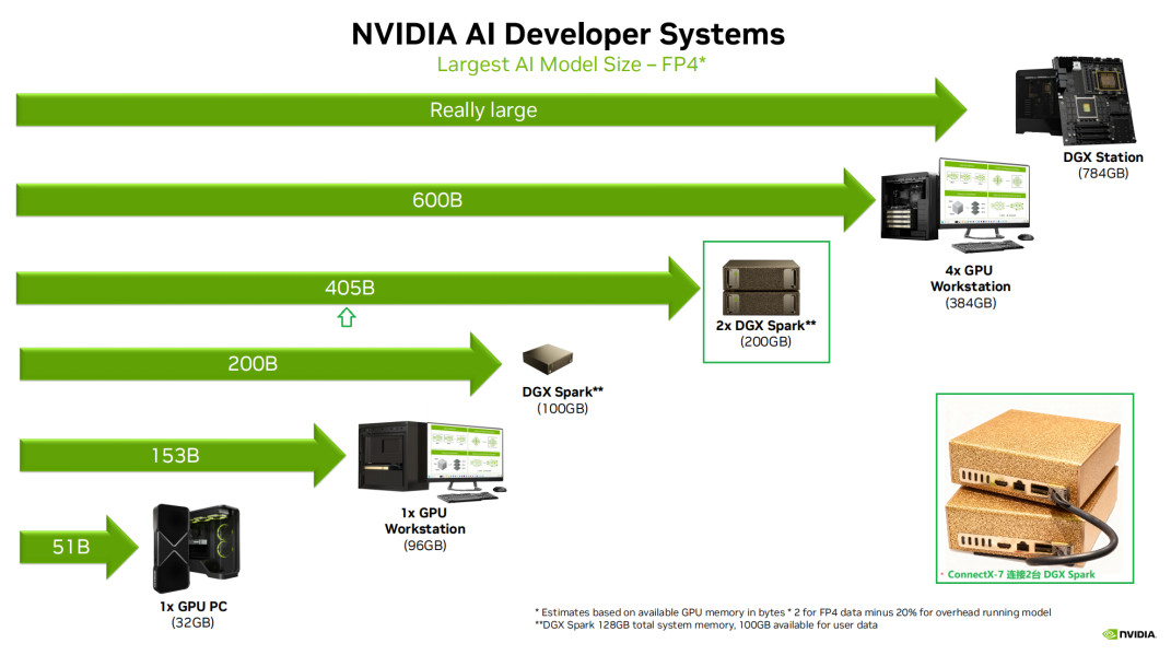 支持将多台DGX Spark组成分布式集群,轻松应对 405B 参数以上的超大规模模型训练。[2]