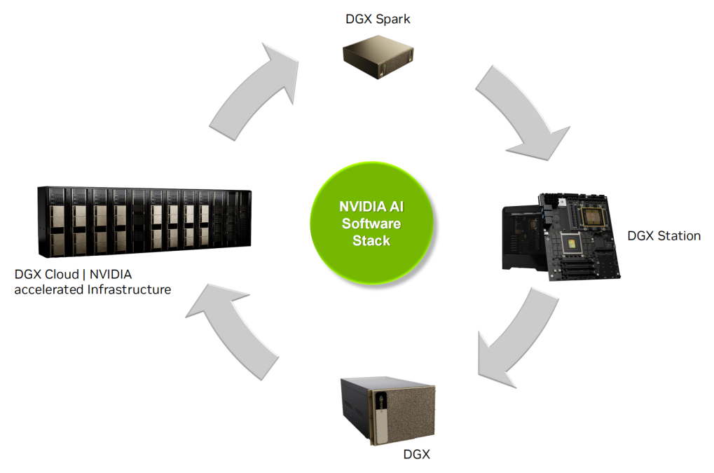 更关键的是,开发者可将 DGX Spark 上的本地开发、微调模型,通过统一的 AI 软件栈无缝迁移到 DGX Cloud,借助云端更大规模的算力完成大规模训练或部署,真正实现“端侧开发 - 云端部署”的闭环流转,让不同规模的用户(个人开发者、企业、科研机构)都能高效利用 NVIDIA 的 AI 技术栈开展工作。