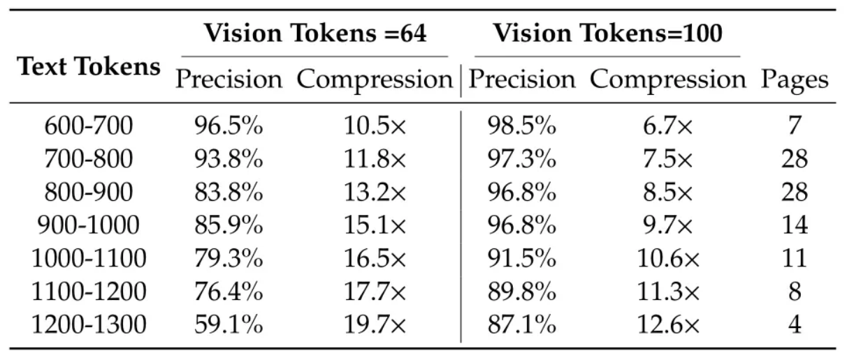 该技术创新性地将文档视为完整图像,通过视觉 token 进行压缩。实验数据显示,在 10 倍压缩比下,64 vis toks 仍保持近 97% 的还原准确率,这对于许多应用场景无疑是极具吸引力的。[1,2]