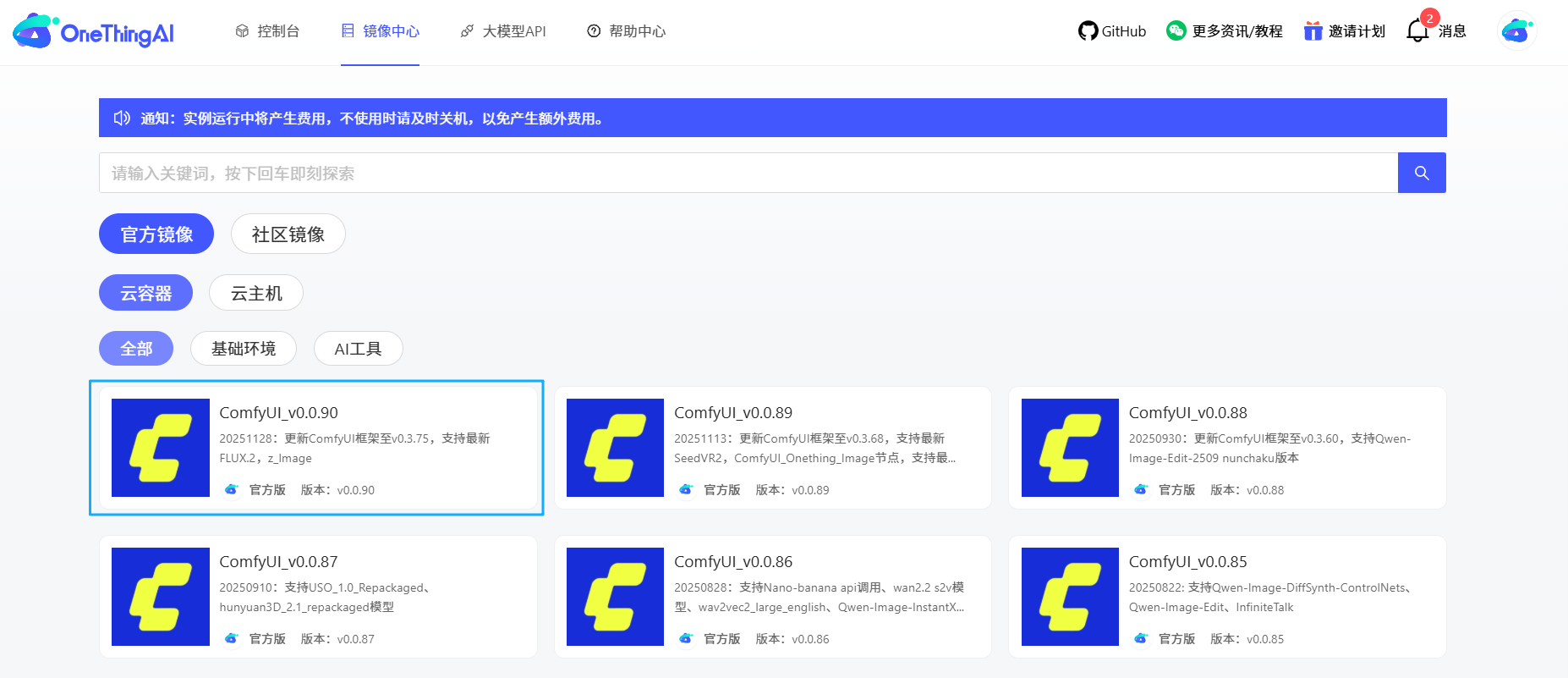 平台镜像中心最新的 ComfyUl_v0.0.90 版本已深度集成上述两款模型的优化配置,无需手动调试参数、部署环境,新手也能一键启动,真正实现开箱即用;