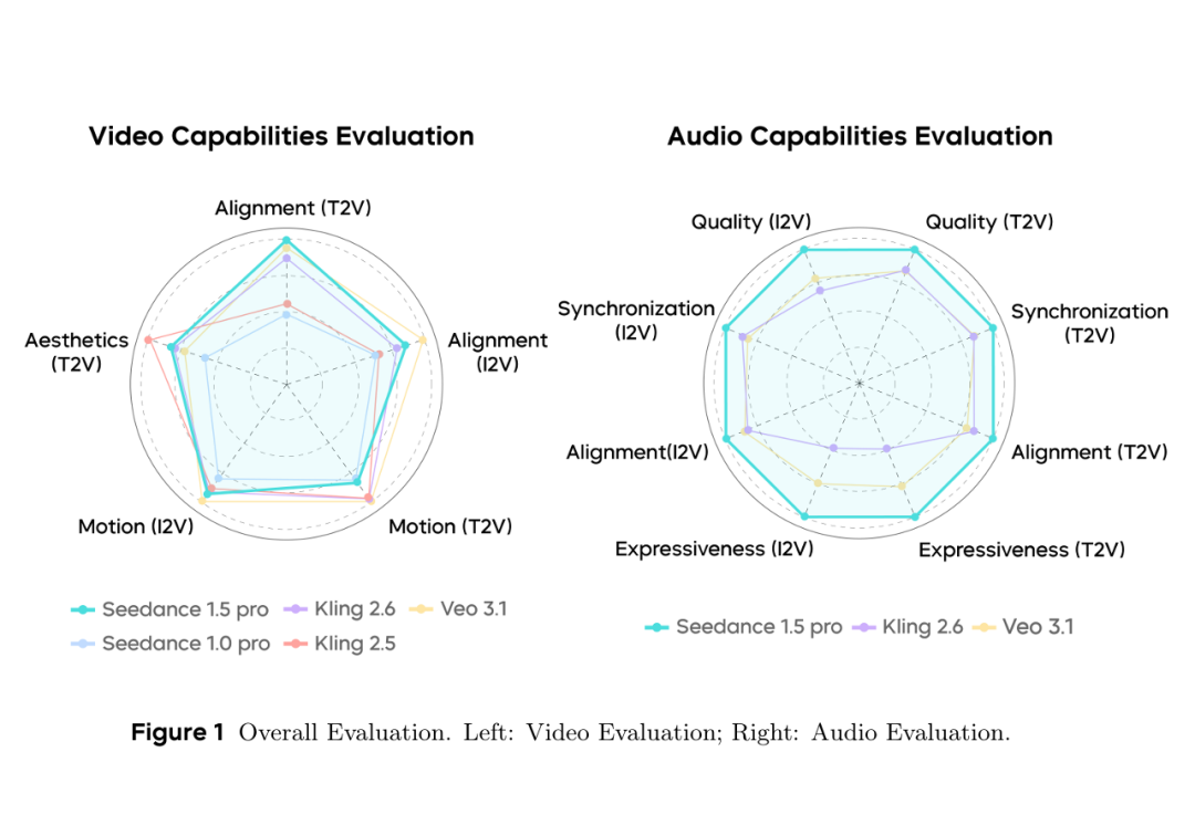 作为原生音视频联合生成的多模态模型,Seedance 1.5 Pro 可同时处理文本、图像、音频等多种数据模态,实现角色口型、语调、表演节奏与生成画面的高精度同步,甚至支持多语种与方言的自然表达,为 AI 内容创作带来了前所未有的真实感与沉浸感。据官方基准测试数据透露,Seedance 1.5 Pro 对视频的复杂指令理解精准,生成画面效果自然真实;且在音频多项评测维度上也展现出了稳定且均衡的整体优势。