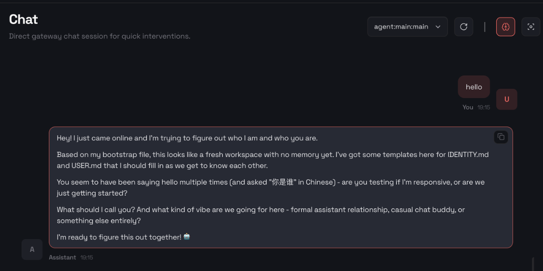 echo 'ONETHINGAI_API_KEY=your_key_here' >> ~/.openclaw/.envvim ~/.openclaw/openclaw.json"models": { "mode": "merge", "providers": { "onethingai": { "baseUrl": "https://api-model.onethingai.com/v2/openai", "apiKey": "${ONETHINGAI_API_KEY}", "api": "openai-completions", "models": [ { "id": "minimax-m2.1", "name": "Minimax M2.1", "reasoning": false, "input": ["text"], "contextWindow": 200000, "maxTokens": 8192 } ] } } }"agents": { "defaults": { "model": { "primary": "onethingai/minimax-m2.1" } } }配置成功后,启动 gateway,并访问公网服务配置生成的访问地址,即可见 WebChat。